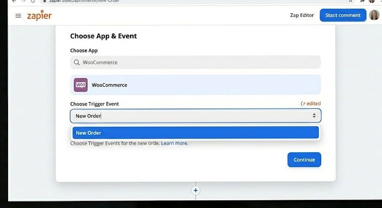 2. Choose WooCommerce as your app and New Order as the trigger.
