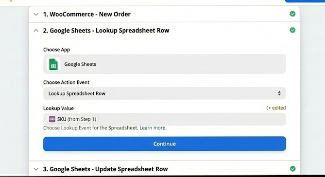 1. Store to Sheet: When a sale happens on WooCommerce, the Sheet updates automatically.